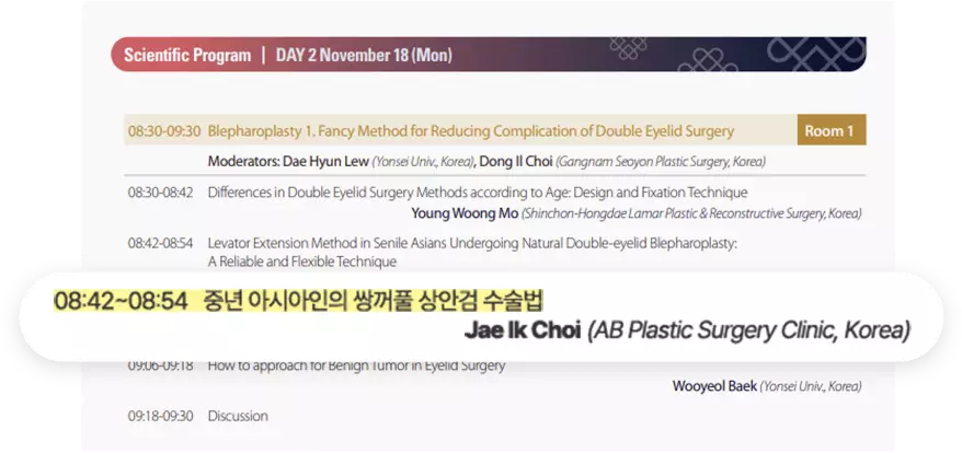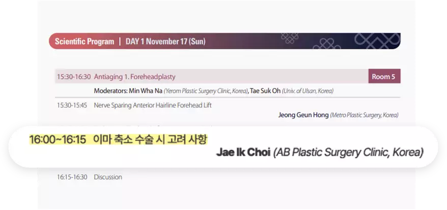 在本届大会上,AB整形外科医疗团队就针对亚洲中年患者的额部缩小手术与上睑成形术发表了专业见解。