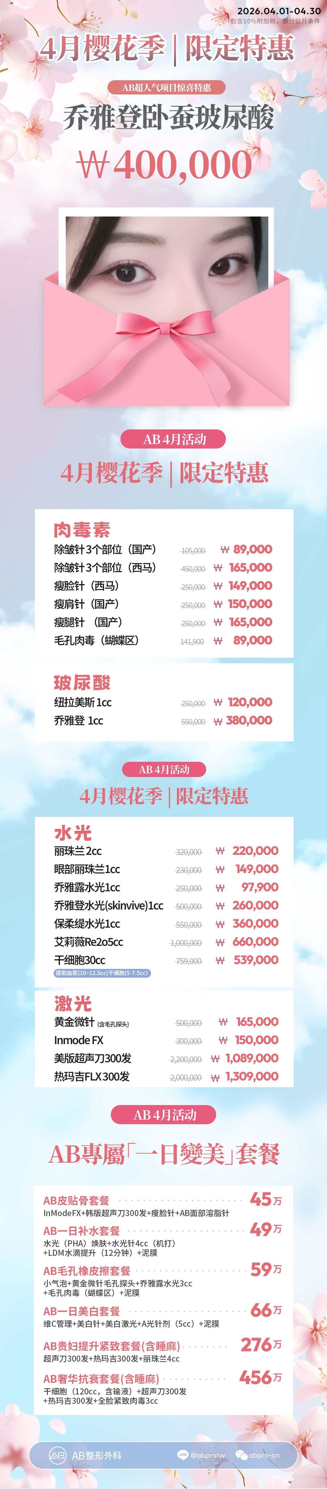 #韓國皮膚科#韓國醫美#4月活動#櫻花季醫美#水光針#熱瑪吉#超聲刀#韓國皮膚管理#抗老提升#韓國醫美活動