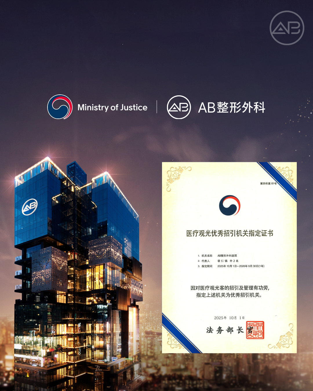 AB整形外科荣幸获得韩国法务部指定为 2025年度优秀医疗观光接待机构。