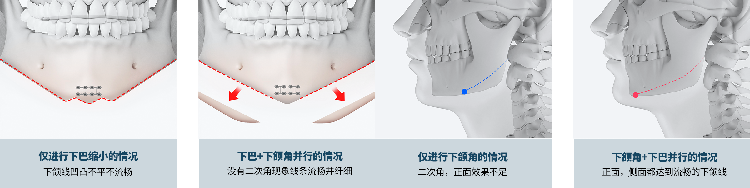 下颌角手术可切除下颌的棱角部分,有效打造流畅、纤细的脸型。 但侧颌较宽时,仅通过下颌角手术,正面效果可能有限。 在这种情况下,如果同时进行下巴手术,同时矫正下颌的宽度和形状,则即使在正面也能打造出更加纤细、更小的脸型。 因此,根据个人的面部结构和目标,仅通过下颌角手术即可获得想要的效果, 但为了更均衡的术后效果,最好考虑进行下巴手术等追加手术计划。