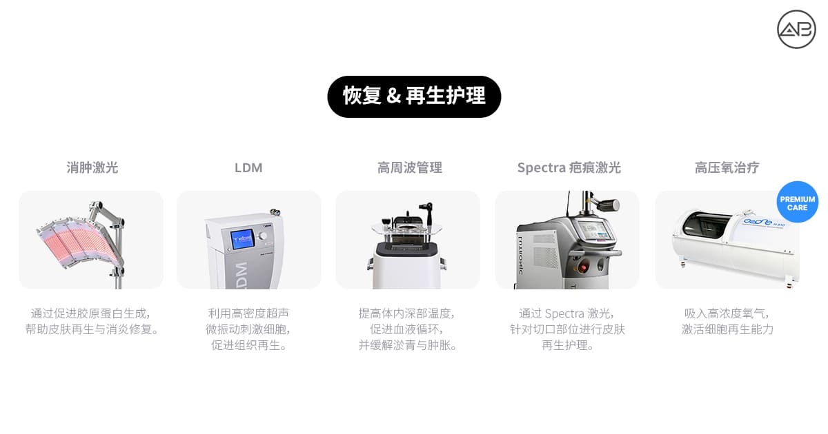 在恢复初期,根据个人体质与恢复速度,重点观察肿胀、出血、疤痕变化等情况,并按需阶段性地实施恢复与再生管理项目,在缩短恢复期的同时,提前预防潜在问题。