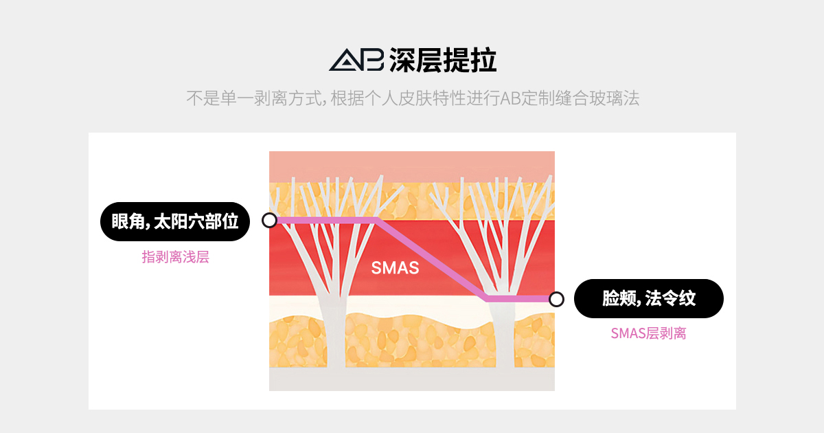 3.个性化手术设计:根据每个人的 SMAS层厚度与皮肤特性,调整分离与提升方式,达到最理想效果。