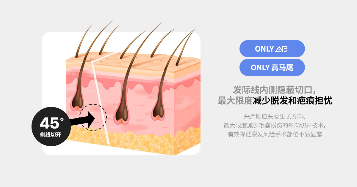 1.隐形切口,疤痕几乎不可见:切口位于发际线内侧,术后疤痕难以察觉,最大程度减少疤痕担忧。