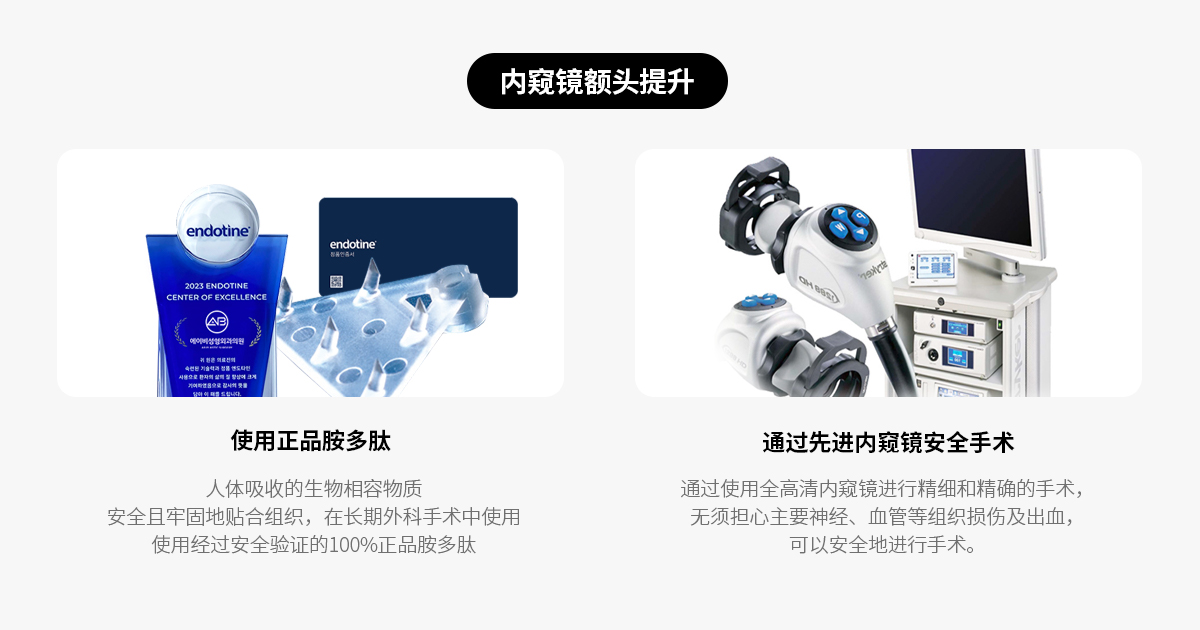 尤其是在该手术中使用的“Endotine(恩多泰因)”固定装置,是获得 FDA 认证的安全植入物,固定在额骨上,可显著增强提拉效果。