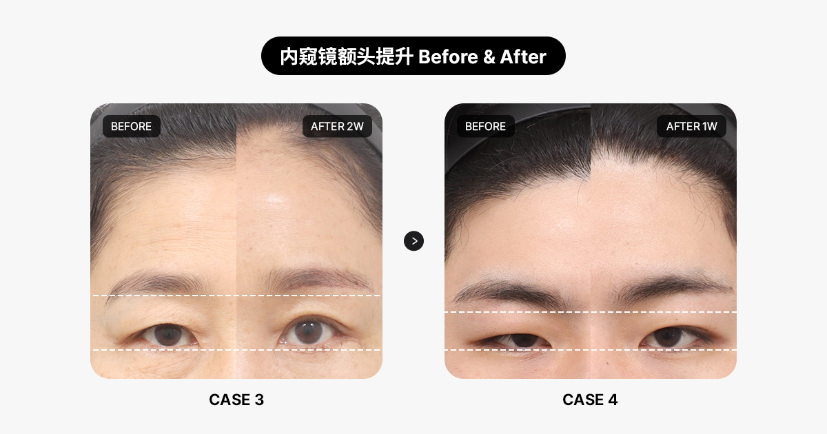 这一点通过对比内窥镜额头提升术的前后效果可以更清晰地看出。当实际患者术后变得更加明亮清晰的面容而感到满意时,我作为整形外科医生也感到无比欣慰。