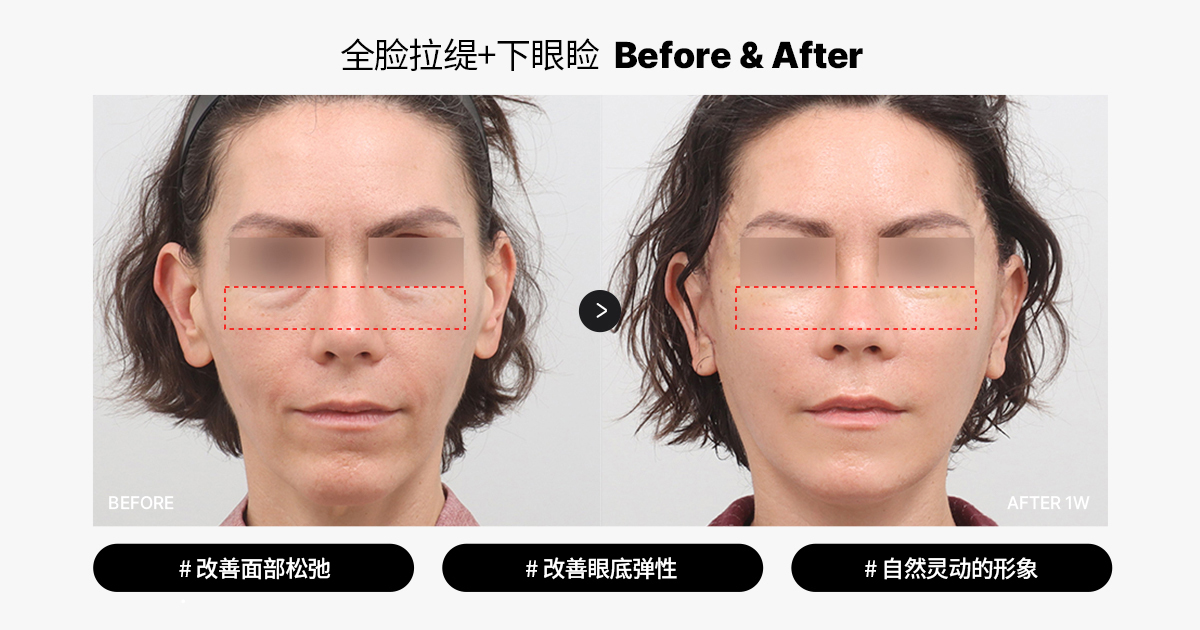 虽然面部拉皮可以整体提升下垂皮肤,但它并不能专门针对眼下皮肤的松弛与脂肪突出。所以: