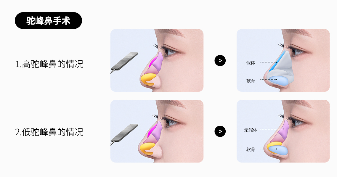 在 AB 整形外科,驼峰鼻的矫正方式会根据鼻型类型的不同而有所区别。