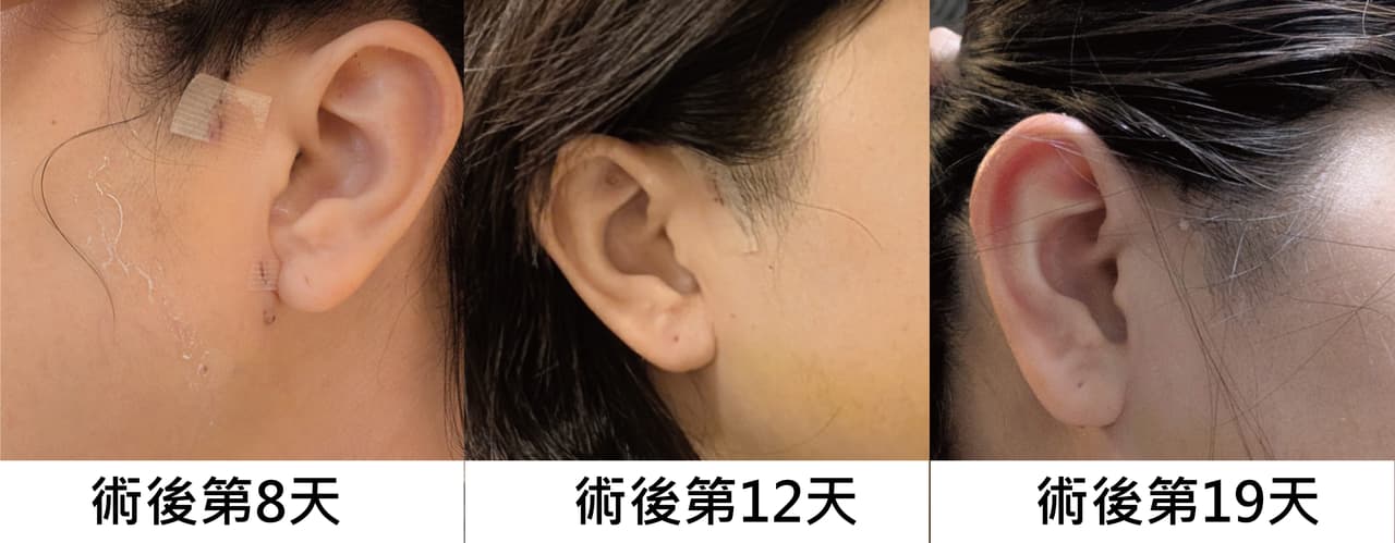 基本上現在不仔細看,是有點難看到傷口的。也會藏在鬢角左右的位子,也沒被問過耳朵的傷口,知道的人也看不太出來釘子的位子。