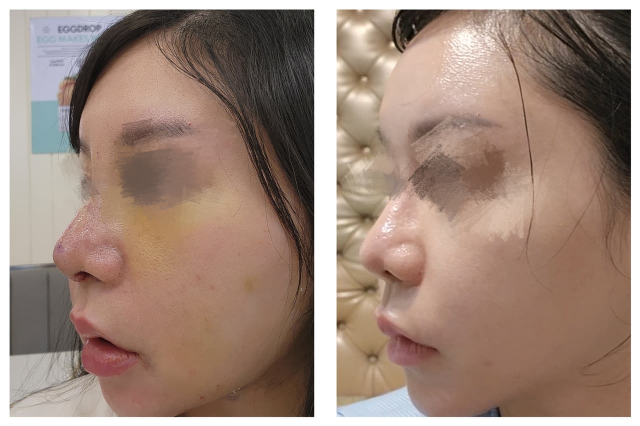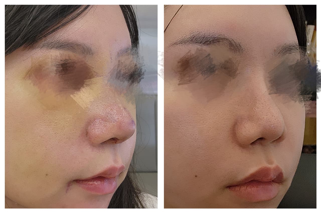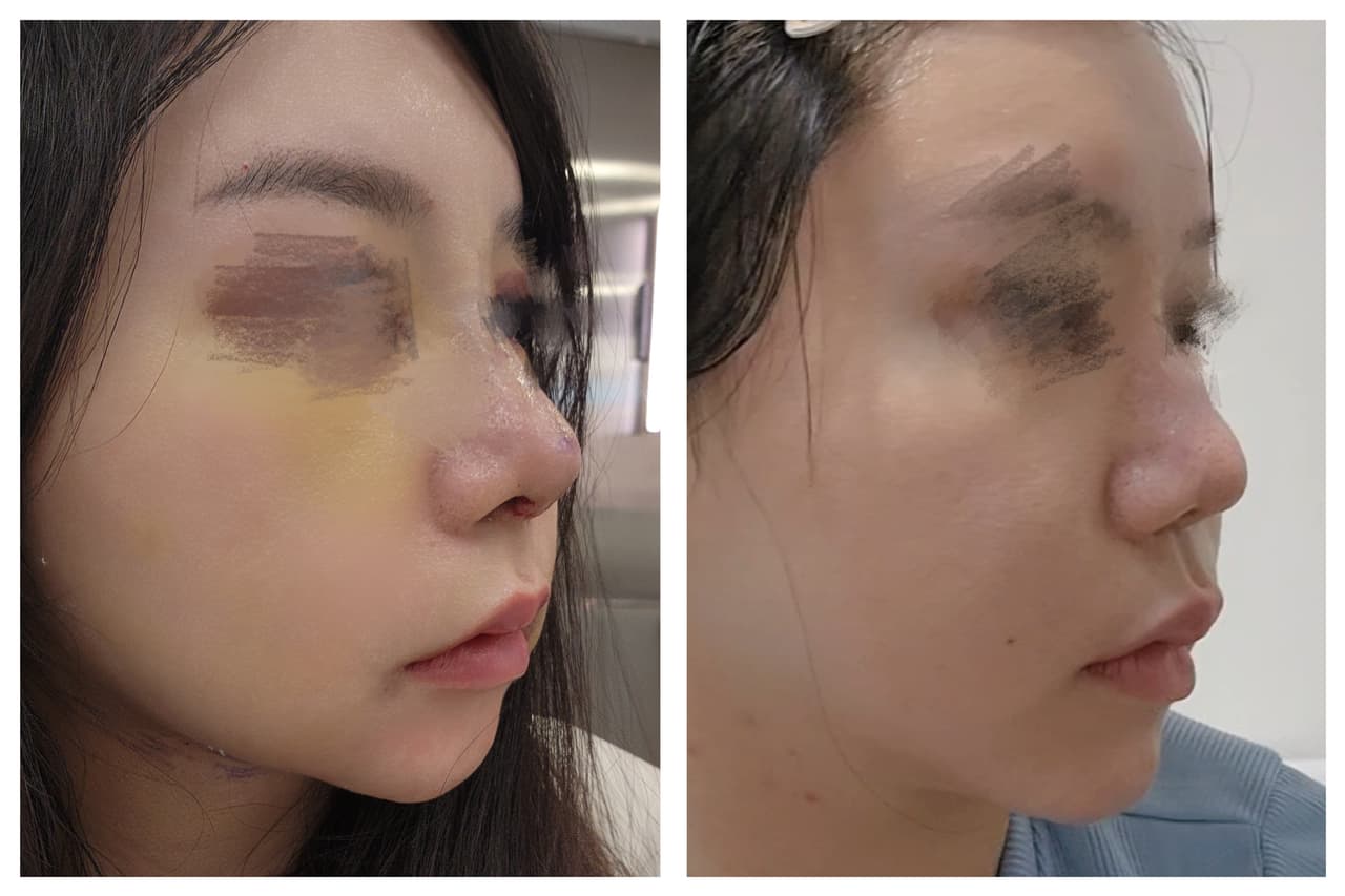 兩個禮拜大部分瘀青都消得差不多,第二週基本可以正常上班。三個月過後,鼻型幾乎定型了,現在摸起來也很自然、沒有異物感。 現在的感覺? 照鏡子的時候真的有種「這就是我一直想要的模樣」的感覺,輪廓更立體,拍照角度也好看很多,甚至不用再修鼻子了🥰。