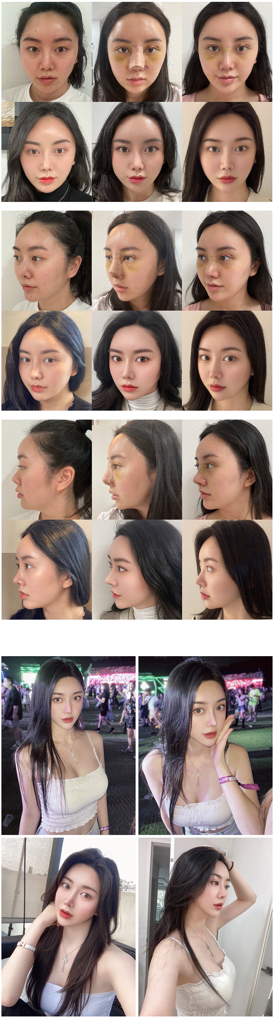 鼻子 – 跟手术前相比鼻翼缩小了很多,鼻梁也高了,每天看觉得很神奇,仔细看疤痕也看不出来,很满意。 真的非常自然,虽然变漂亮了但周围的人都看不出来,这点也是很满意。